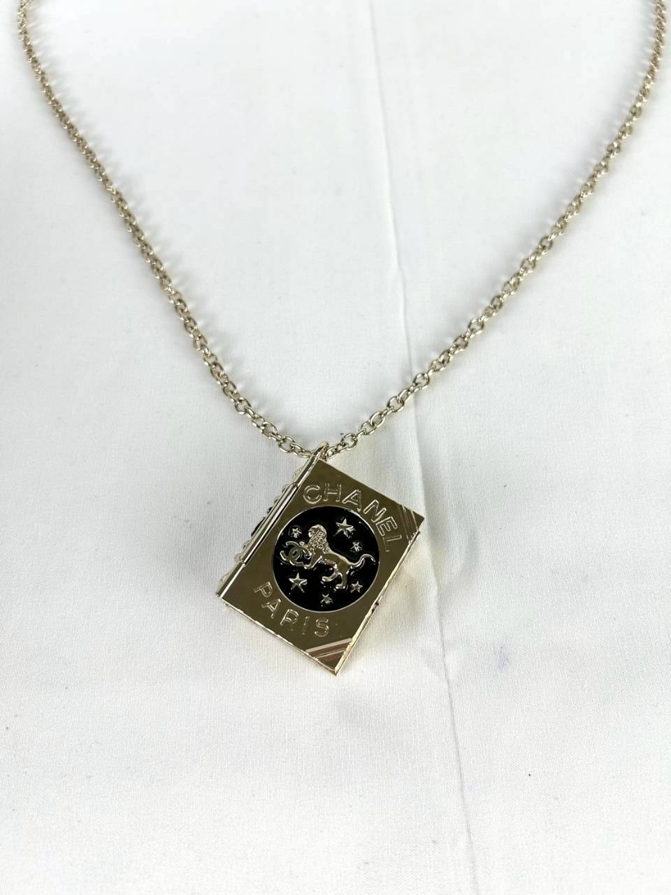 Chanel Metal CC Lion Book Locket Necklace