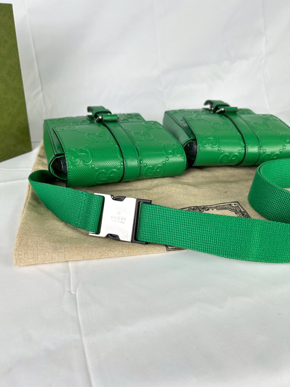 Gucci GG Embossed Perforated Double Belt Bag