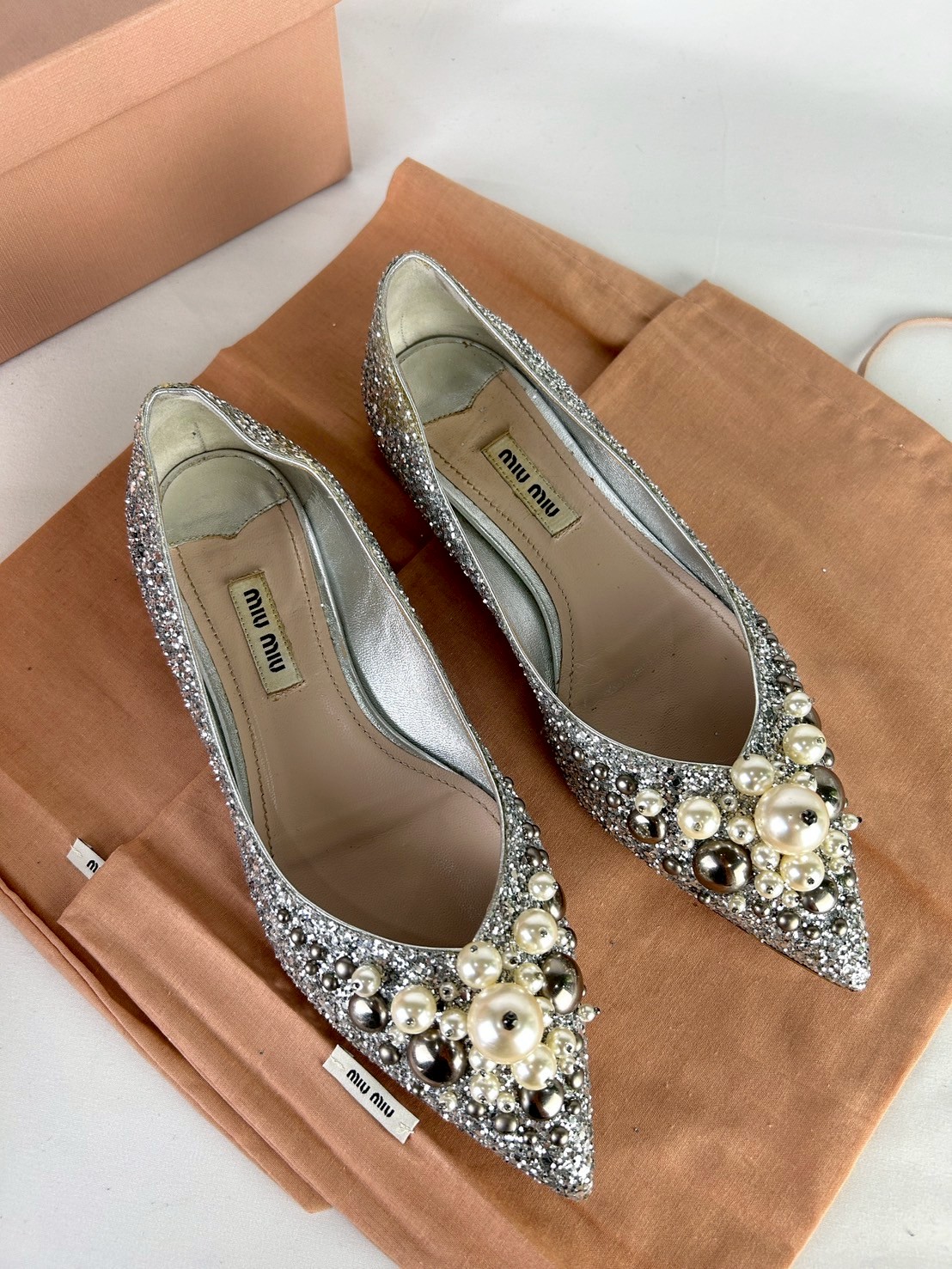 Miumiu Pearl&Crystal Embellished